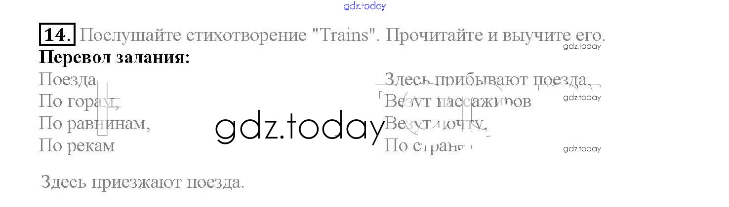 На страницах сайта gdz.today вы найдете учебный и вспомогательный материал, направленный на улучшения знаний школьной программы. ГДЗ - онлайн мир знаний Решение к Lesson 32 14 Учебнику по Английскому языку для 4 класса Верещагина, Афанасьева Углубленный уровень Просвещение 2015