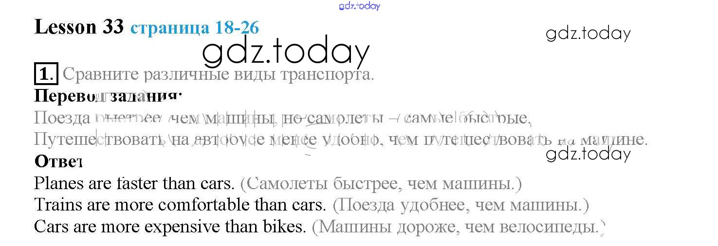 На страницах сайта gdz.today вы найдете учебный и вспомогательный материал, направленный на улучшения знаний школьной программы. ГДЗ - онлайн мир знаний Решение к Lesson 33 1 Учебнику по Английскому языку для 4 класса Верещагина, Афанасьева Углубленный уровень Просвещение 2015