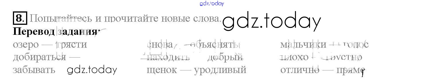 На страницах сайта gdz.today вы найдете учебный и вспомогательный материал, направленный на улучшения знаний школьной программы. ГДЗ - онлайн мир знаний Решение к Lesson 33 8 Учебнику по Английскому языку для 4 класса Верещагина, Афанасьева Углубленный уровень Просвещение 2015