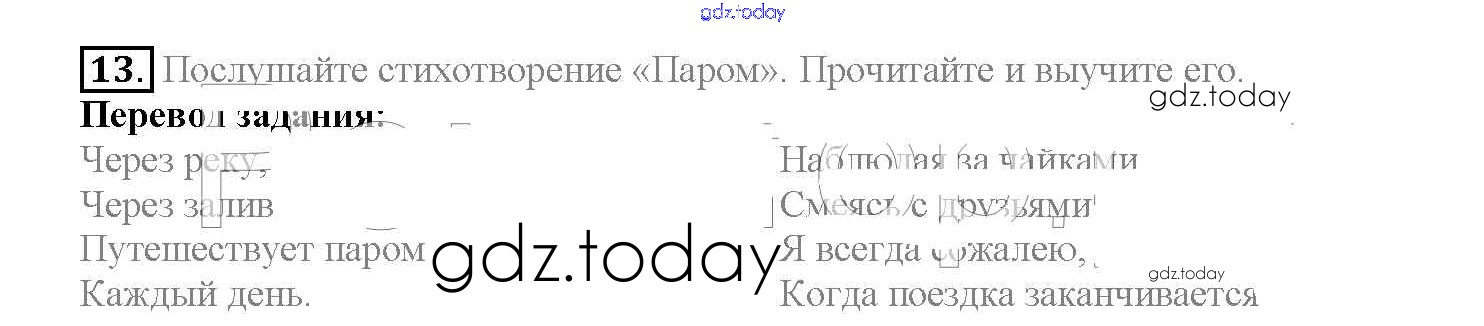 На страницах сайта gdz.today вы найдете учебный и вспомогательный материал, направленный на улучшения знаний школьной программы. ГДЗ - онлайн мир знаний Решение к Lesson 34 13 Учебнику по Английскому языку для 4 класса Верещагина, Афанасьева Углубленный уровень Просвещение 2015