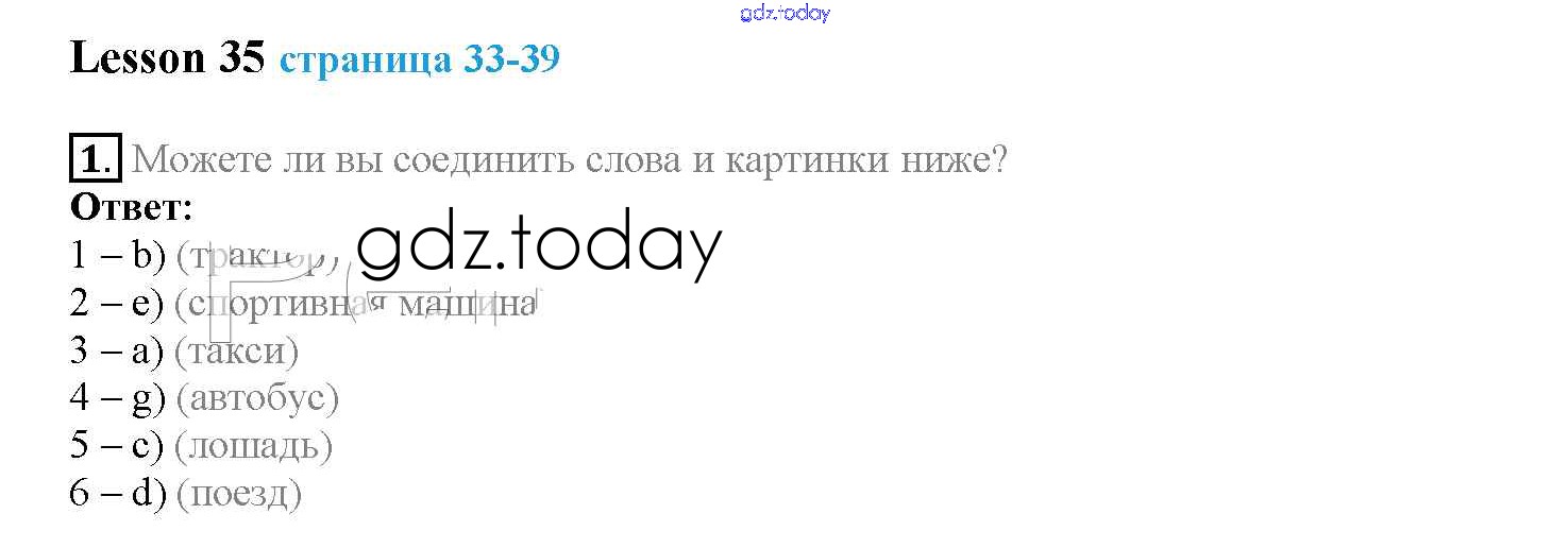 На страницах сайта gdz.today вы найдете учебный и вспомогательный материал, направленный на улучшения знаний школьной программы. ГДЗ - онлайн мир знаний Решение к Lesson 35 1 Учебнику по Английскому языку для 4 класса Верещагина, Афанасьева Углубленный уровень Просвещение 2015