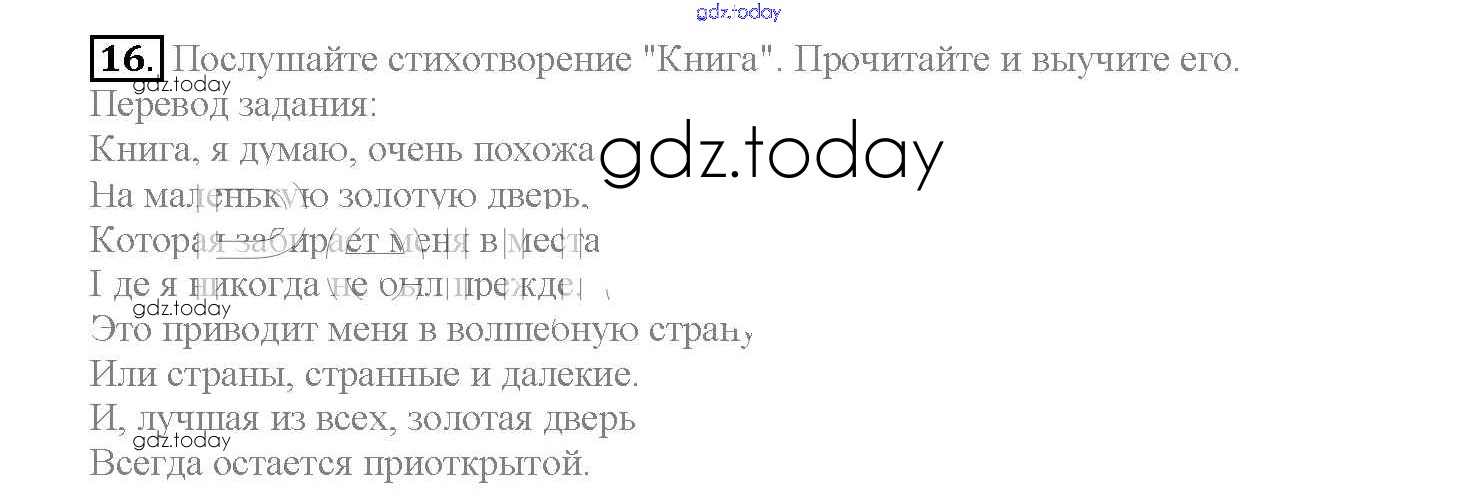 На страницах сайта gdz.today вы найдете учебный и вспомогательный материал, направленный на улучшения знаний школьной программы. ГДЗ - онлайн мир знаний Решение к Lesson 41 16 Учебнику по Английскому языку для 4 класса Верещагина, Афанасьева Углубленный уровень Просвещение 2015
