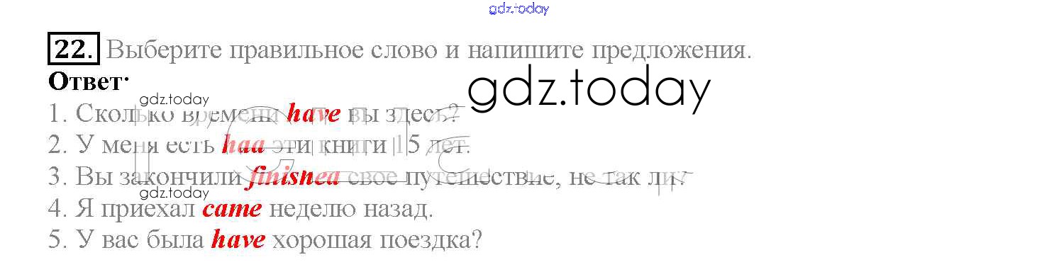 На страницах сайта gdz.today вы найдете учебный и вспомогательный материал, направленный на улучшения знаний школьной программы. ГДЗ - онлайн мир знаний Решение к Lesson 46 22 Учебнику по Английскому языку для 4 класса Верещагина, Афанасьева Углубленный уровень Просвещение 2015