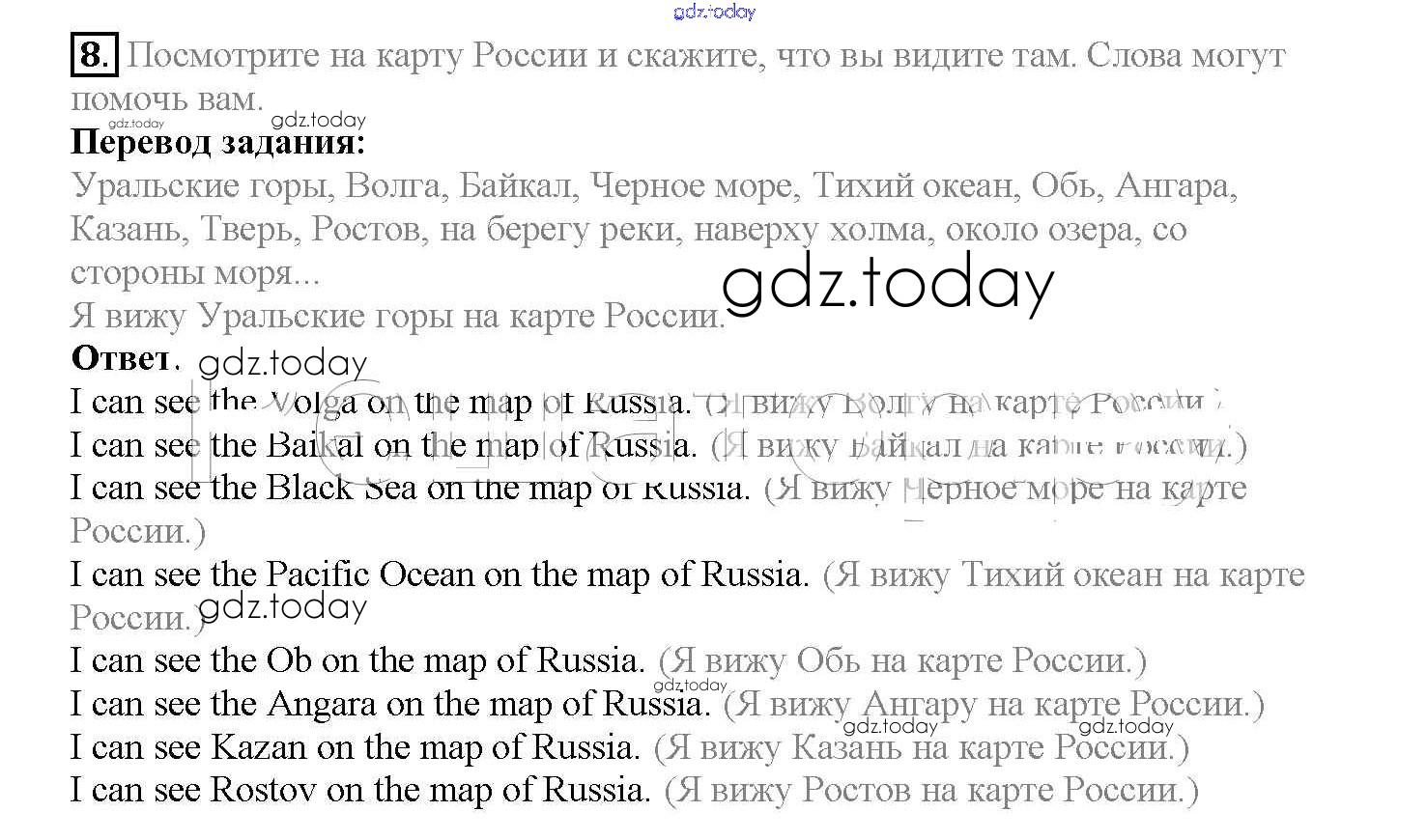 На страницах сайта gdz.today вы найдете учебный и вспомогательный материал, направленный на улучшения знаний школьной программы. ГДЗ - онлайн мир знаний Решение к Lesson 54 8 Учебнику по Английскому языку для 4 класса Верещагина, Афанасьева Углубленный уровень Просвещение 2015