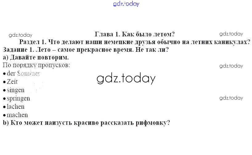 На страницах сайта gdz.today вы найдете учебный и вспомогательный материал, направленный на улучшения знаний школьной программы. ГДЗ - онлайн мир знаний Раздел 1 Решение к главе 1. Как было летом 1 Учебнику по Немецкому языку для 4 класса Бим Просвещение Академический школьный учебник 2014