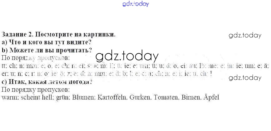 На страницах сайта gdz.today вы найдете учебный и вспомогательный материал, направленный на улучшения знаний школьной программы. ГДЗ - онлайн мир знаний Раздел 1 Решение к главе 1. Как было летом 2 Учебнику по Немецкому языку для 4 класса Бим Просвещение Академический школьный учебник 2014