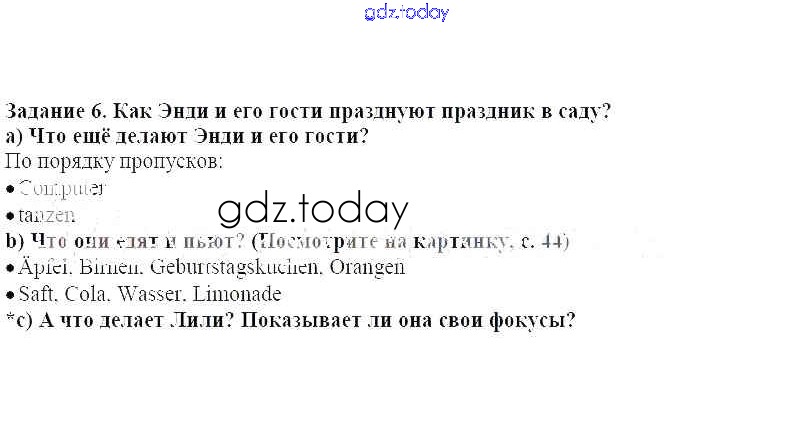 На страницах сайта gdz.today вы найдете учебный и вспомогательный материал, направленный на улучшения знаний школьной программы. ГДЗ - онлайн мир знаний Раздел 5 Решение к главе 1. Как было летом 6 Учебнику по Немецкому языку для 4 класса Бим Просвещение Академический школьный учебник 2014