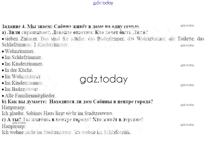 На страницах сайта gdz.today вы найдете учебный и вспомогательный материал, направленный на улучшения знаний школьной программы. ГДЗ - онлайн мир знаний Раздел 2 Решение к главе 3. Мой дом. Что здесь есть 4 Учебнику по Немецкому языку для 4 класса Бим Просвещение Академический школьный учебник 2014