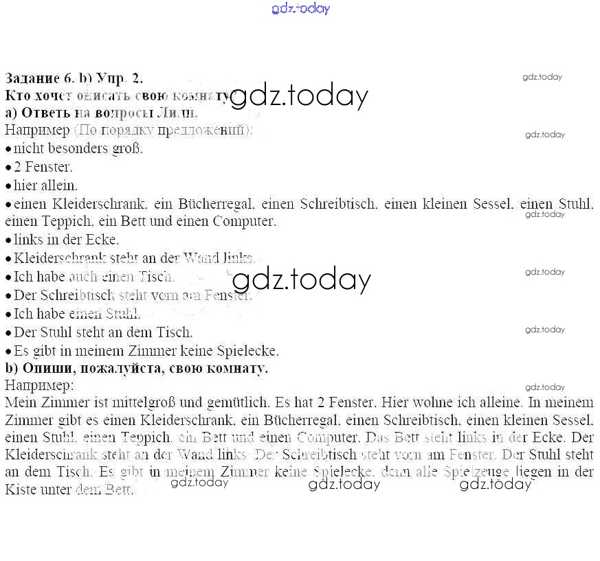 На страницах сайта gdz.today вы найдете учебный и вспомогательный материал, направленный на улучшения знаний школьной программы. ГДЗ - онлайн мир знаний Раздел 4 Решение к главе 3. Мой дом. Что здесь есть 6 Учебнику по Немецкому языку для 4 класса Бим Просвещение Академический школьный учебник 2014