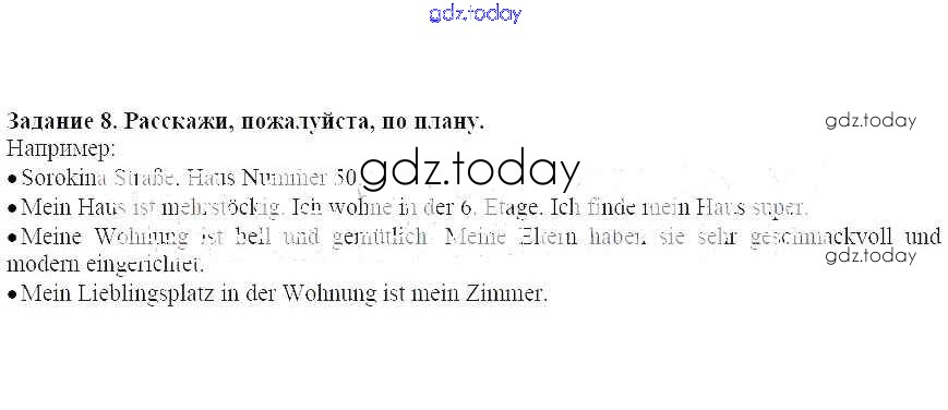 На страницах сайта gdz.today вы найдете учебный и вспомогательный материал, направленный на улучшения знаний школьной программы. ГДЗ - онлайн мир знаний Раздел 6-7 Решение к главе 3. Мой дом. Что здесь есть 8 Учебнику по Немецкому языку для 4 класса Бим Просвещение Академический школьный учебник 2014