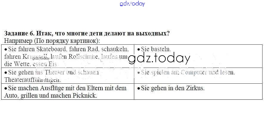 На страницах сайта gdz.today вы найдете учебный и вспомогательный материал, направленный на улучшения знаний школьной программы. ГДЗ - онлайн мир знаний Раздел 6-7 Решение к главе 4. Свободное время … Что мы тогда делаем 6 Учебнику по Немецкому языку для 4 класса Бим Просвещение Академический школьный учебник 2014