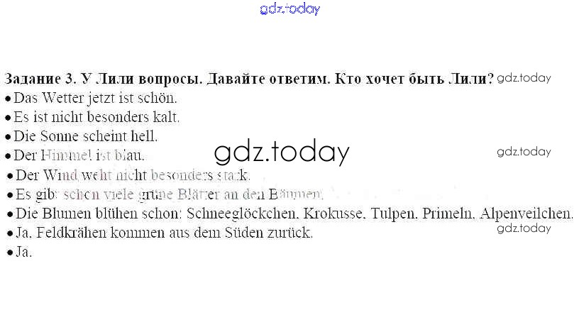 На страницах сайта gdz.today вы найдете учебный и вспомогательный материал, направленный на улучшения знаний школьной программы. ГДЗ - онлайн мир знаний Раздел 1 Решение к главе 5. Скоро наступят долгие каникулы 3 Учебнику по Немецкому языку для 4 класса Бим Просвещение Академический школьный учебник 2014