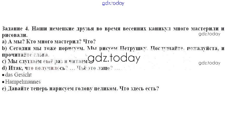 На страницах сайта gdz.today вы найдете учебный и вспомогательный материал, направленный на улучшения знаний школьной программы. ГДЗ - онлайн мир знаний Раздел 1 Решение к главе 5. Скоро наступят долгие каникулы 4 Учебнику по Немецкому языку для 4 класса Бим Просвещение Академический школьный учебник 2014