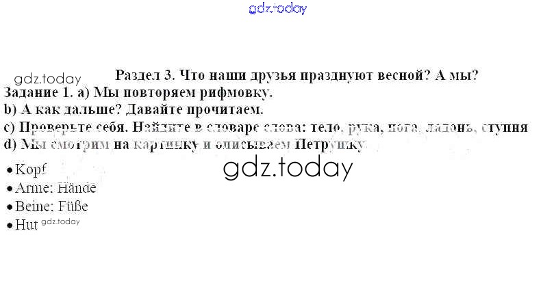 На страницах сайта gdz.today вы найдете учебный и вспомогательный материал, направленный на улучшения знаний школьной программы. ГДЗ - онлайн мир знаний Раздел 3 Решение к главе 5. Скоро наступят долгие каникулы 1 Учебнику по Немецкому языку для 4 класса Бим Просвещение Академический школьный учебник 2014
