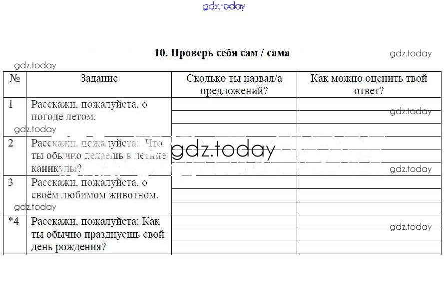 На страницах сайта gdz.today вы найдете учебный и вспомогательный материал, направленный на улучшения знаний школьной программы. ГДЗ - онлайн мир знаний Решение к теме "Как прошло лето" Проверь себя Рабочей тетради по Немецкому языку для 4 класса Бим, Рыжова Просвещение 2020