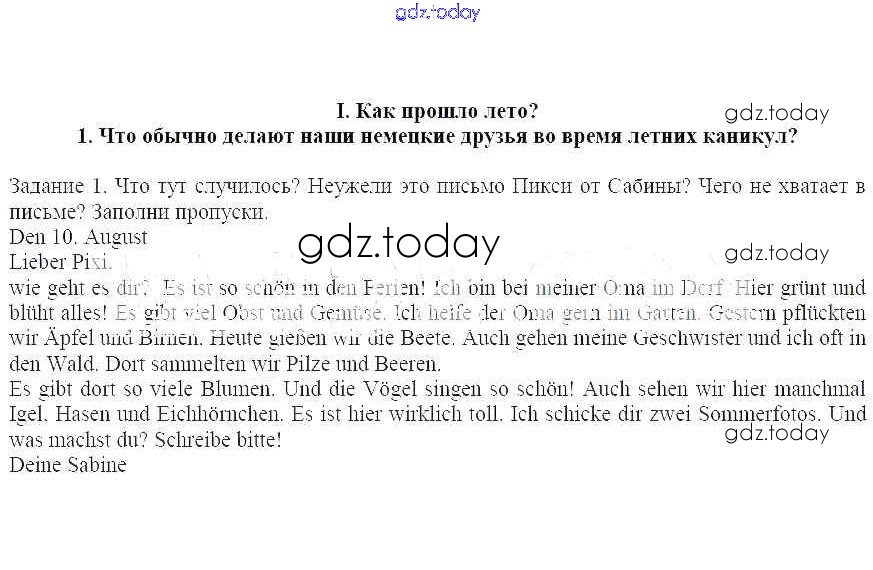 На страницах сайта gdz.today вы найдете учебный и вспомогательный материал, направленный на улучшения знаний школьной программы. ГДЗ - онлайн мир знаний Что обычно делают наши немецкие друзья во время летних каникул Решение к теме "Как прошло лето" 1 Рабочей тетради по Немецкому языку для 4 класса Бим, Рыжова Просвещение 2020