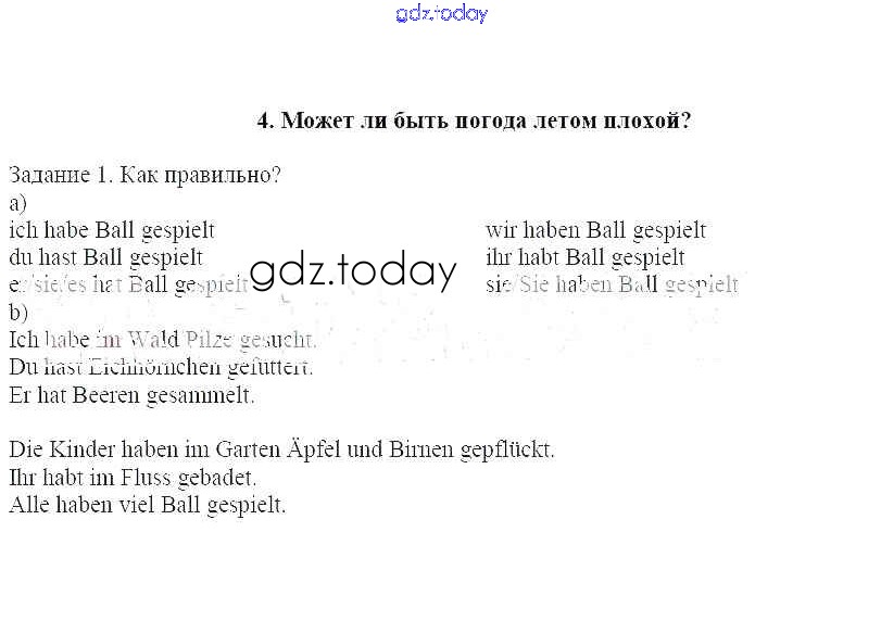 На страницах сайта gdz.today вы найдете учебный и вспомогательный материал, направленный на улучшения знаний школьной программы. ГДЗ - онлайн мир знаний Может ли быть погода летом плохой Решение к теме "Как прошло лето" 1 Рабочей тетради по Немецкому языку для 4 класса Бим, Рыжова Просвещение 2020