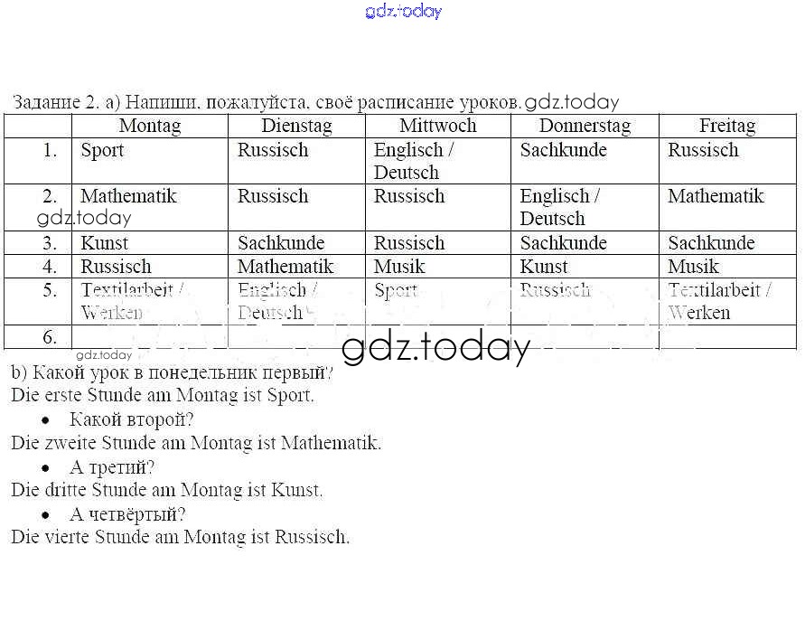 На страницах сайта gdz.today вы найдете учебный и вспомогательный материал, направленный на улучшения знаний школьной программы. ГДЗ - онлайн мир знаний У Сабины и Свена ещё и новое расписание уроков Решение к теме "А что нового в школе" 2 Рабочей тетради по Немецкому языку для 4 класса Бим, Рыжова Просвещение 2020