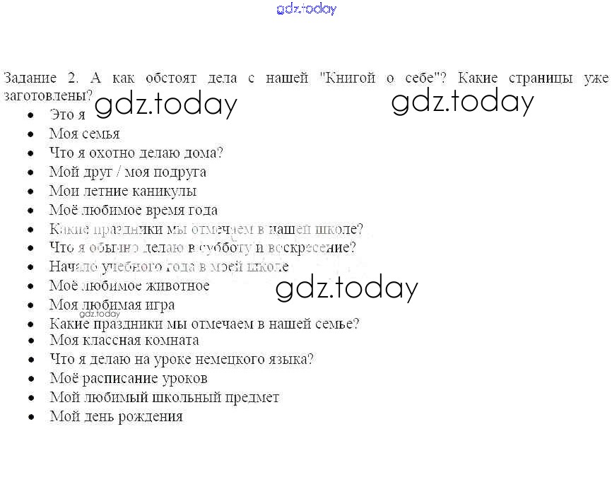 На страницах сайта gdz.today вы найдете учебный и вспомогательный материал, направленный на улучшения знаний школьной программы. ГДЗ - онлайн мир знаний Проверь себя сам (сама) Решение к теме "А что нового в школе" 2 Рабочей тетради по Немецкому языку для 4 класса Бим, Рыжова Просвещение 2020