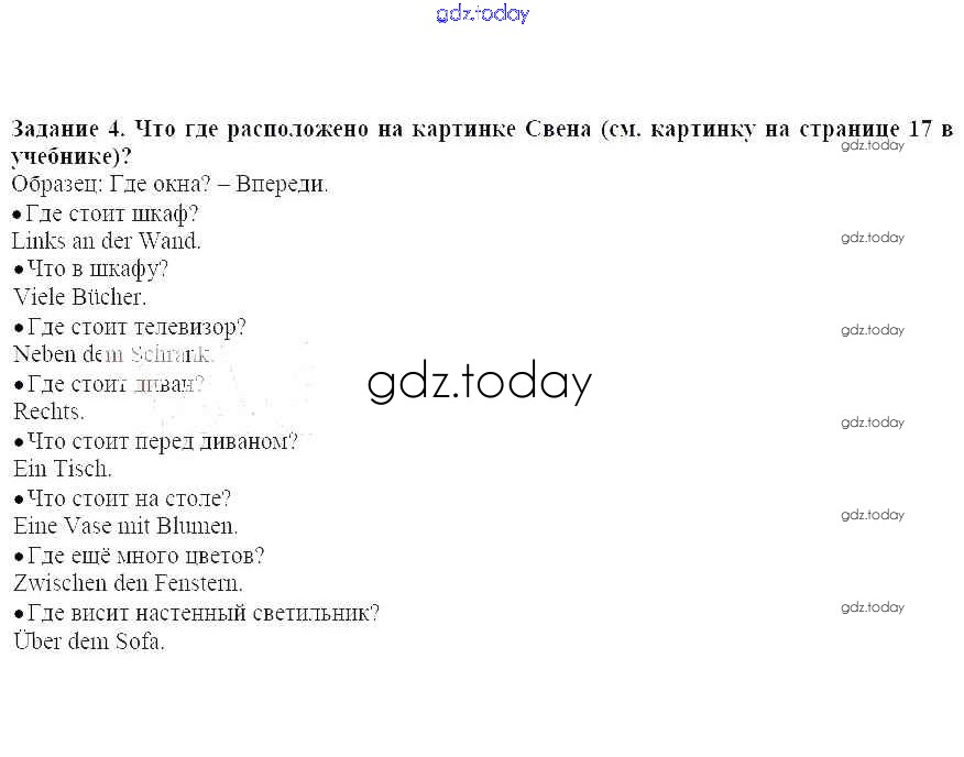 На страницах сайта gdz.today вы найдете учебный и вспомогательный материал, направленный на улучшения знаний школьной программы. ГДЗ - онлайн мир знаний В квартире. Где что стоит Решение к теме "Мой дом (У меня дома). Что же тут есть" 4 Рабочей тетради по Немецкому языку для 4 класса Бим, Рыжова Просвещение 2020