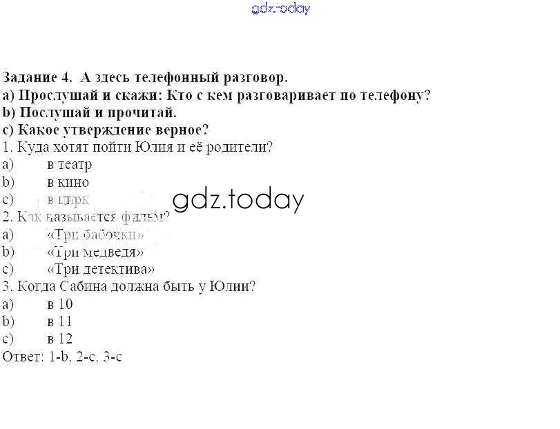 На страницах сайта gdz.today вы найдете учебный и вспомогательный материал, направленный на улучшения знаний школьной программы. ГДЗ - онлайн мир знаний Мы играем и поем Решение к теме "Свободное время … Чем мы занимаемся" 4 Рабочей тетради по Немецкому языку для 4 класса Бим, Рыжова Просвещение 2020