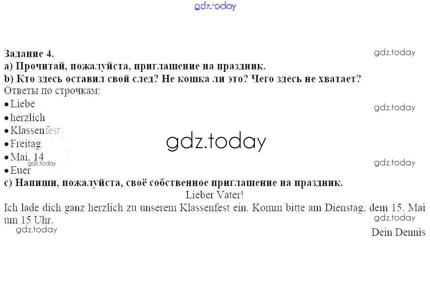 На страницах сайта gdz.today вы найдете учебный и вспомогательный материал, направленный на улучшения знаний школьной программы. ГДЗ - онлайн мир знаний Что ещё мы делаем к нашему классному празднику Решение к теме "Скоро наступят большие каникулы" 4 Рабочей тетради по Немецкому языку для 4 класса Бим, Рыжова Просвещение 2020