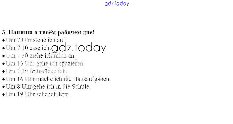 На страницах сайта gdz.today вы найдете учебный и вспомогательный материал, направленный на улучшения знаний школьной программы. ГДЗ - онлайн мир знаний Раздел 2 В. Мой рабочий день Решение к главе 2. Распорядок дня 3 Рабочей тетради по Немецкому языку для 4 класса Гальскова, Гез Дрофа Ритм 2016