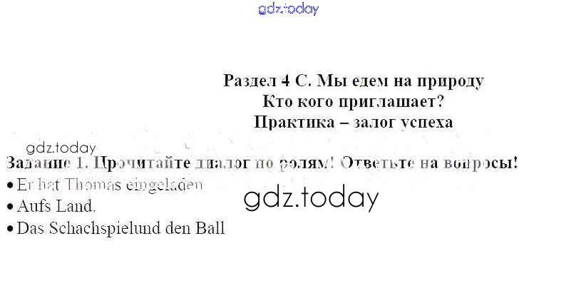 На страницах сайта gdz.today вы найдете учебный и вспомогательный материал, направленный на улучшения знаний школьной программы. ГДЗ - онлайн мир знаний Раздел 4 C. Мы едем на природу Решение к главе 4. Школьные будни 1 Учебнику по Немецкому языку для 4 класса Гальскова, Гез Дрофа Ритм 2014