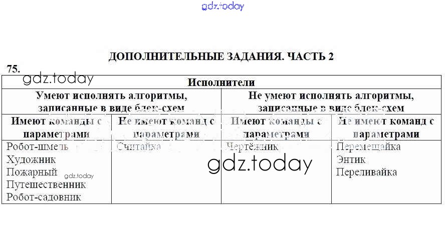 На страницах сайта gdz.today вы найдете учебный и вспомогательный материал, направленный на улучшения знаний школьной программы. ГДЗ - онлайн мир знаний Решение. Часть 2 75 Тетради для самостоятельной работы по Информатике для 4 класса Бененсон, Паутова Академкнига Перспективная начальная школа 2018