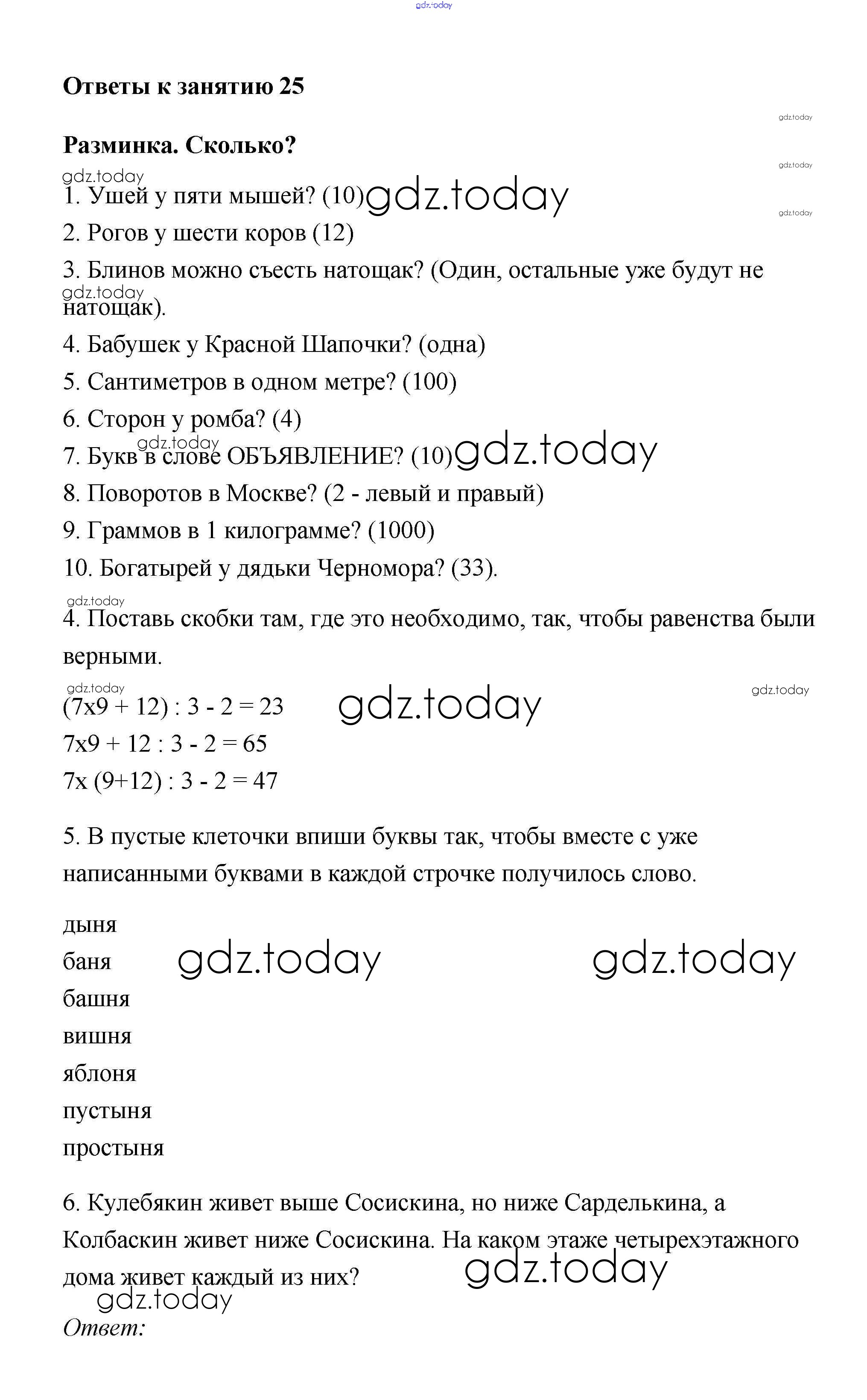 Ответы к Решение к урокам 25 Рабочей тетради по Информатике для 4 класса Холодова Росткнига Юным умникам и умницам 2017