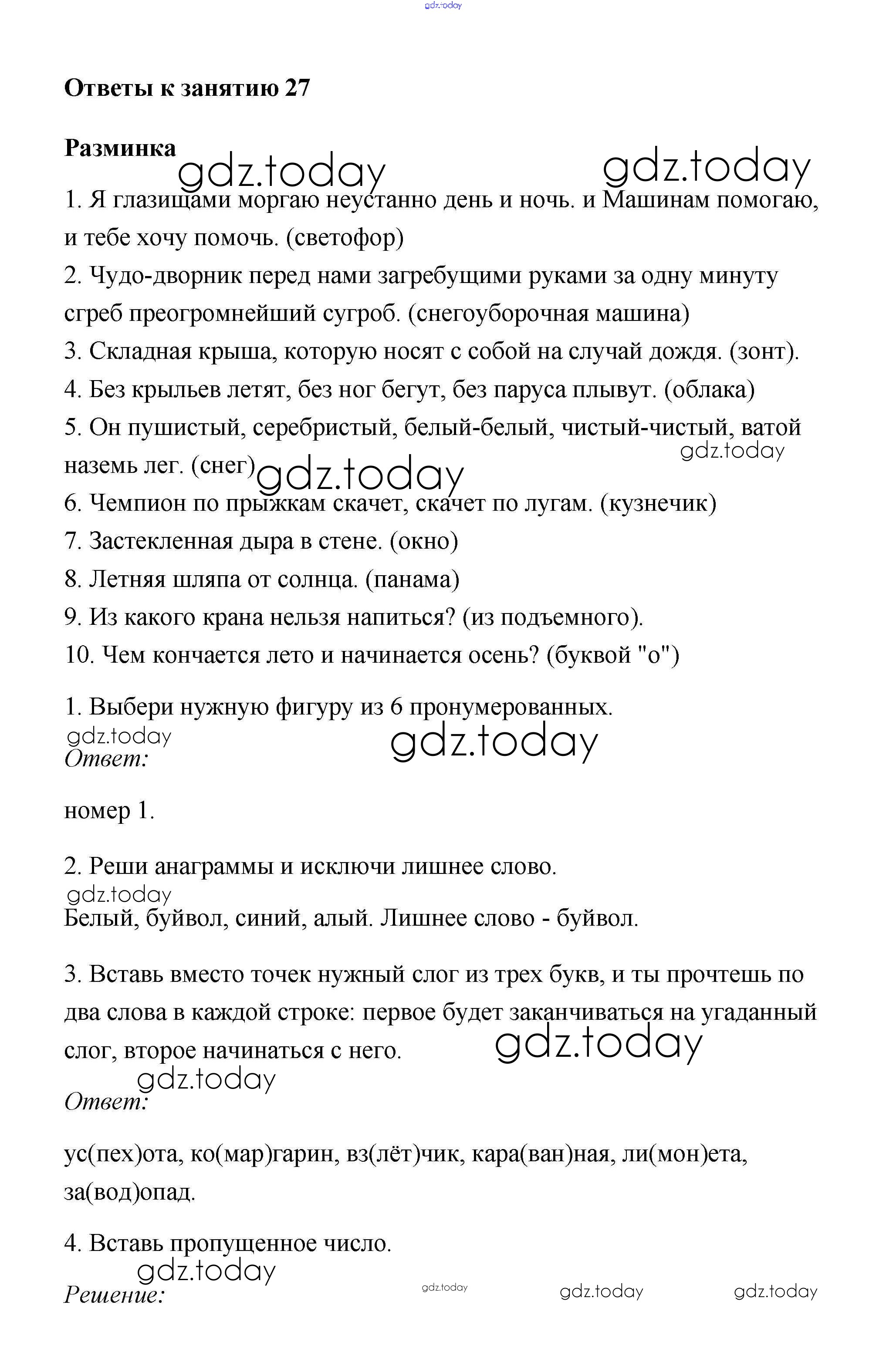 Ответы к Решение к урокам 27 Рабочей тетради по Информатике для 4 класса Холодова Росткнига Юным умникам и умницам 2017