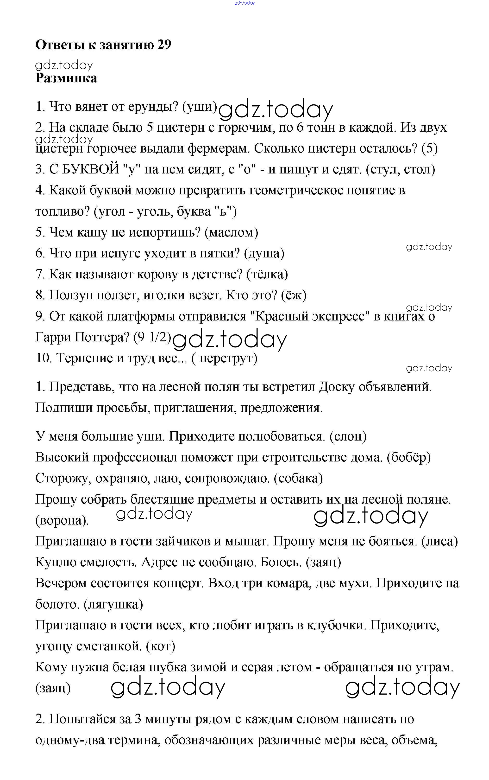 Ответы к Решение к урокам 29 Рабочей тетради по Информатике для 4 класса Холодова Росткнига Юным умникам и умницам 2017