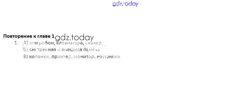 На страницах сайта gdz.today вы найдете учебный и вспомогательный материал, направленный на улучшения знаний школьной программы. ГДЗ - онлайн мир знаний Повторение к главе 1 Решение к части 1 (Параграфы) 1 Рабочей тетради по Информатике для 4 класса Матвеева, Челак Бином 2017