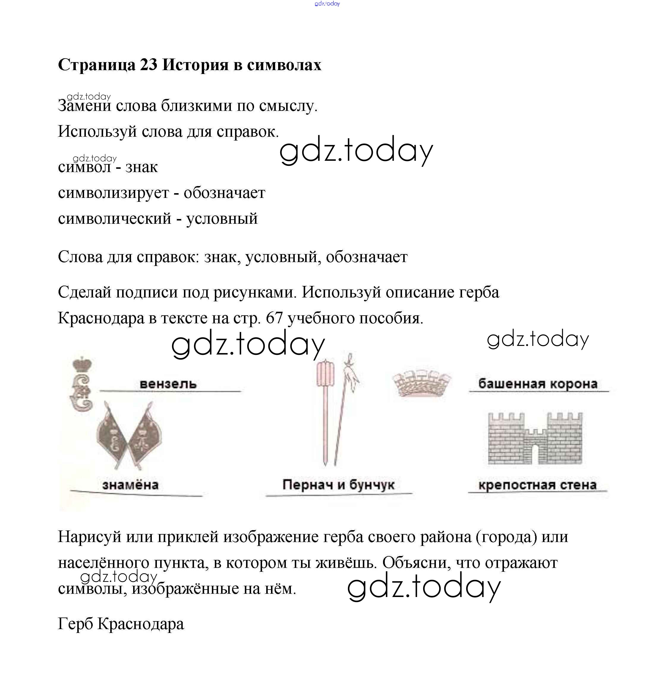 На страницах сайта gdz.today вы найдете учебный и вспомогательный материал, направленный на улучшения знаний школьной программы. ГДЗ - онлайн мир знаний Страницы (решение) 23 Рабочей тетради по Кубановедению для 4 класса Науменко Перспективы образования 2020