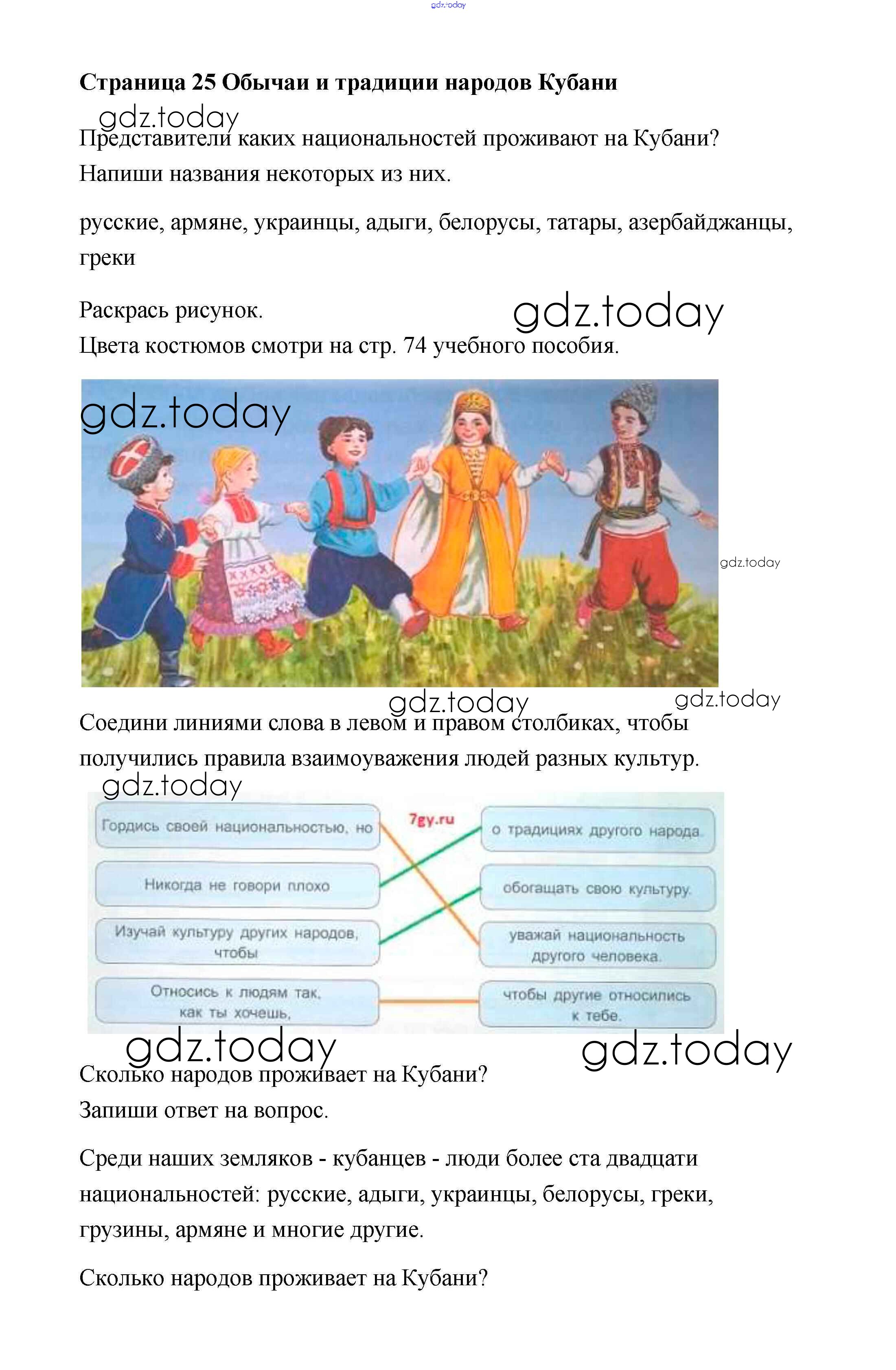 На страницах сайта gdz.today вы найдете учебный и вспомогательный материал, направленный на улучшения знаний школьной программы. ГДЗ - онлайн мир знаний Страницы (решение) 25 Рабочей тетради по Кубановедению для 4 класса Науменко Перспективы образования 2020