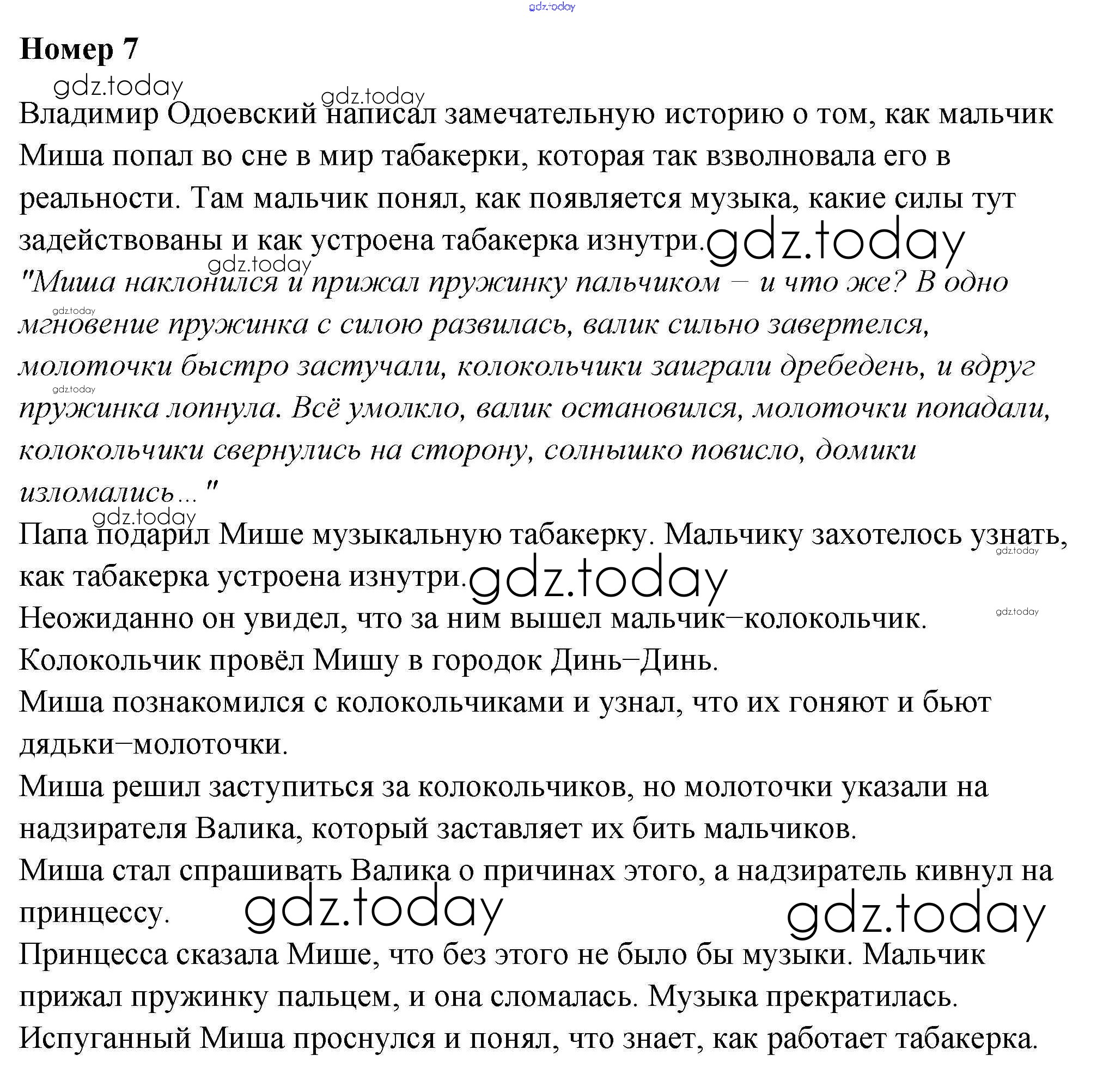 На страницах сайта gdz.today вы найдете учебный и вспомогательный материал, направленный на улучшения знаний школьной программы. ГДЗ - онлайн мир знаний В.Ф. Одоевский "Городок в табакерке" Литературные сказки 7 Рабочей тетради по Литературе для 4 класса Тихомирова Экзамен УМК 2020
