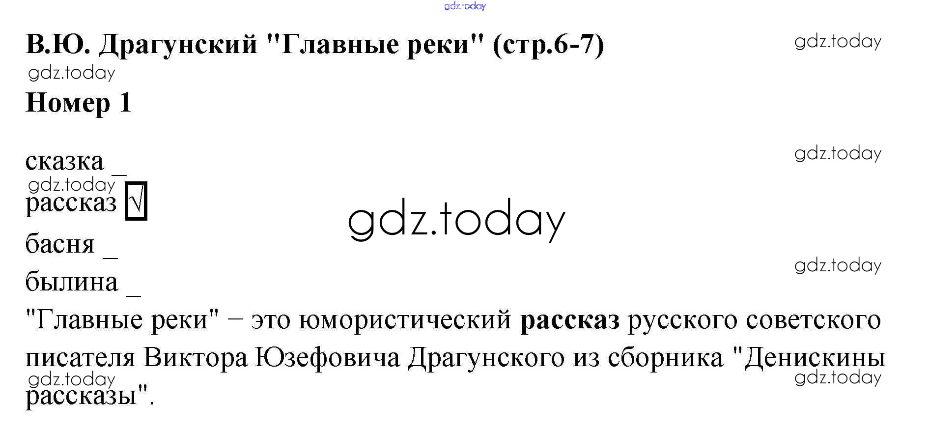 На страницах сайта gdz.today вы найдете учебный и вспомогательный материал, направленный на улучшения знаний школьной программы. ГДЗ - онлайн мир знаний В.Ю. Драгунский "Главные реки" Делу время, потехе час 1 Рабочей тетради по Литературе для 4 класса Тихомирова Экзамен УМК 2020