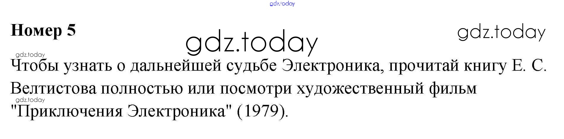 На страницах сайта gdz.today вы найдете учебный и вспомогательный материал, направленный на улучшения знаний школьной программы. ГДЗ - онлайн мир знаний Е.С. Велтистов "Приключения Электроника" Страна фантазия 5 Рабочей тетради по Литературе для 4 класса Тихомирова Экзамен УМК 2020