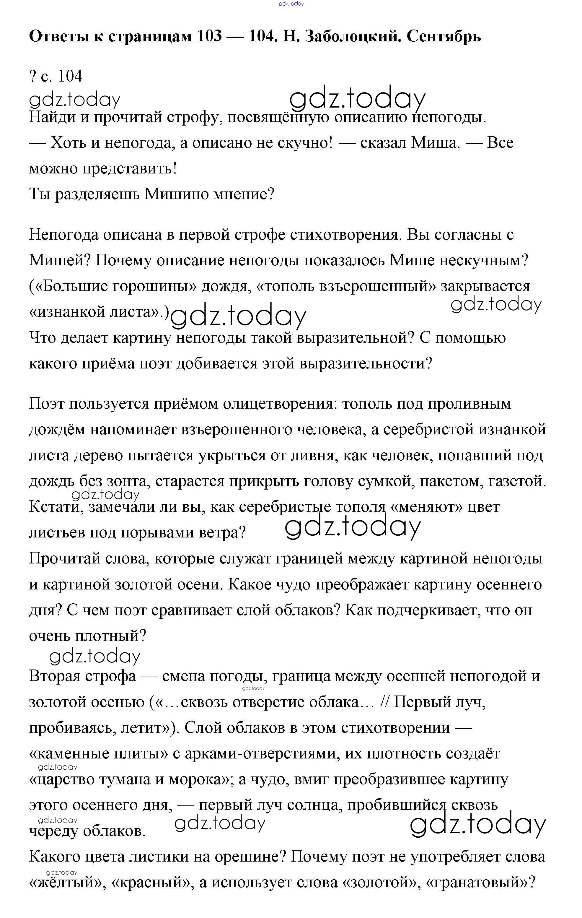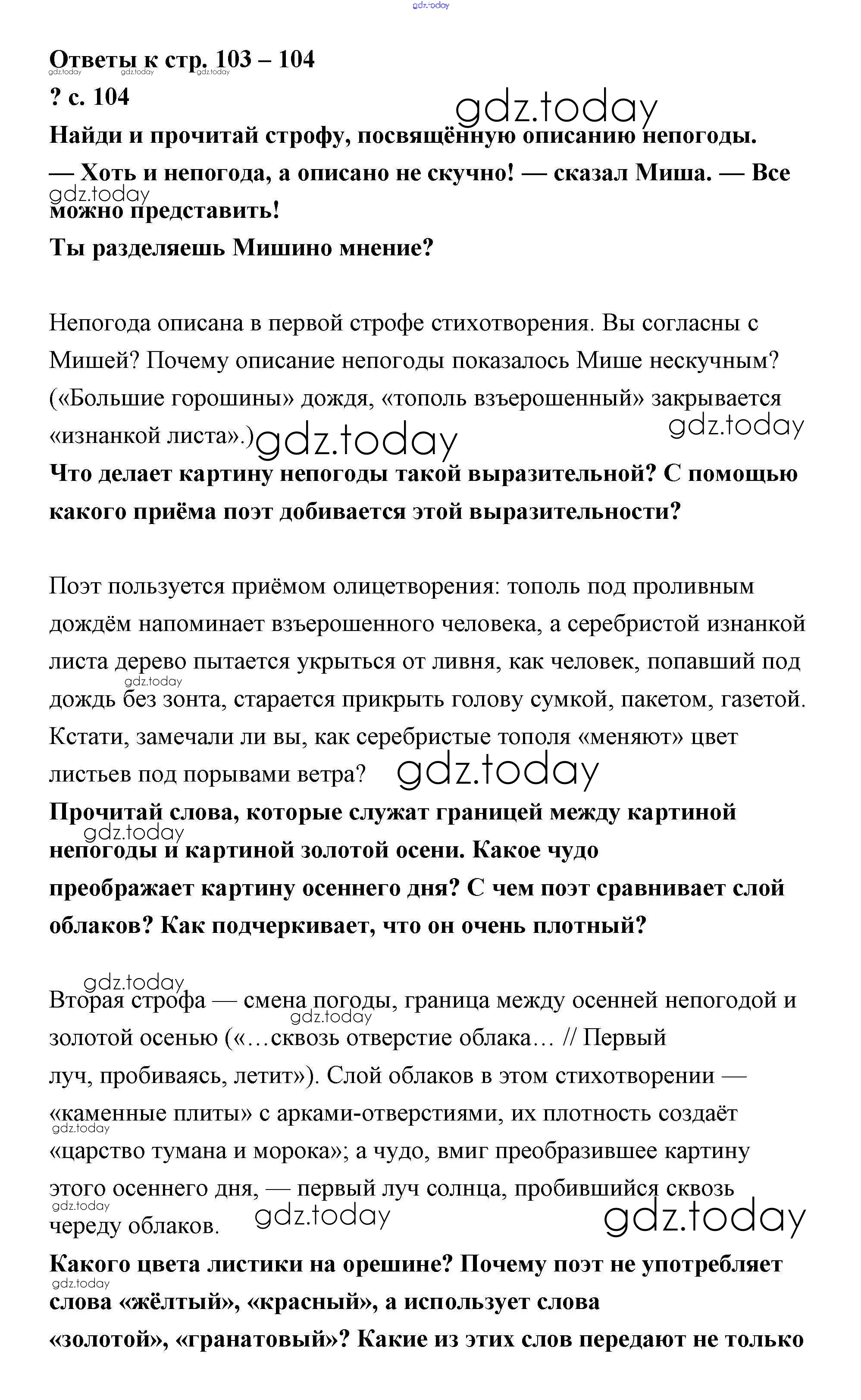 На страницах сайта gdz.today вы найдете учебный и вспомогательный материал, направленный на улучшения знаний школьной программы. ГДЗ - онлайн мир знаний Решение к части 1 (Страницы) 104 Учебнику по Литературному чтению для 4 класса Чуракова Академкнига Перспективная начальная школа 2017