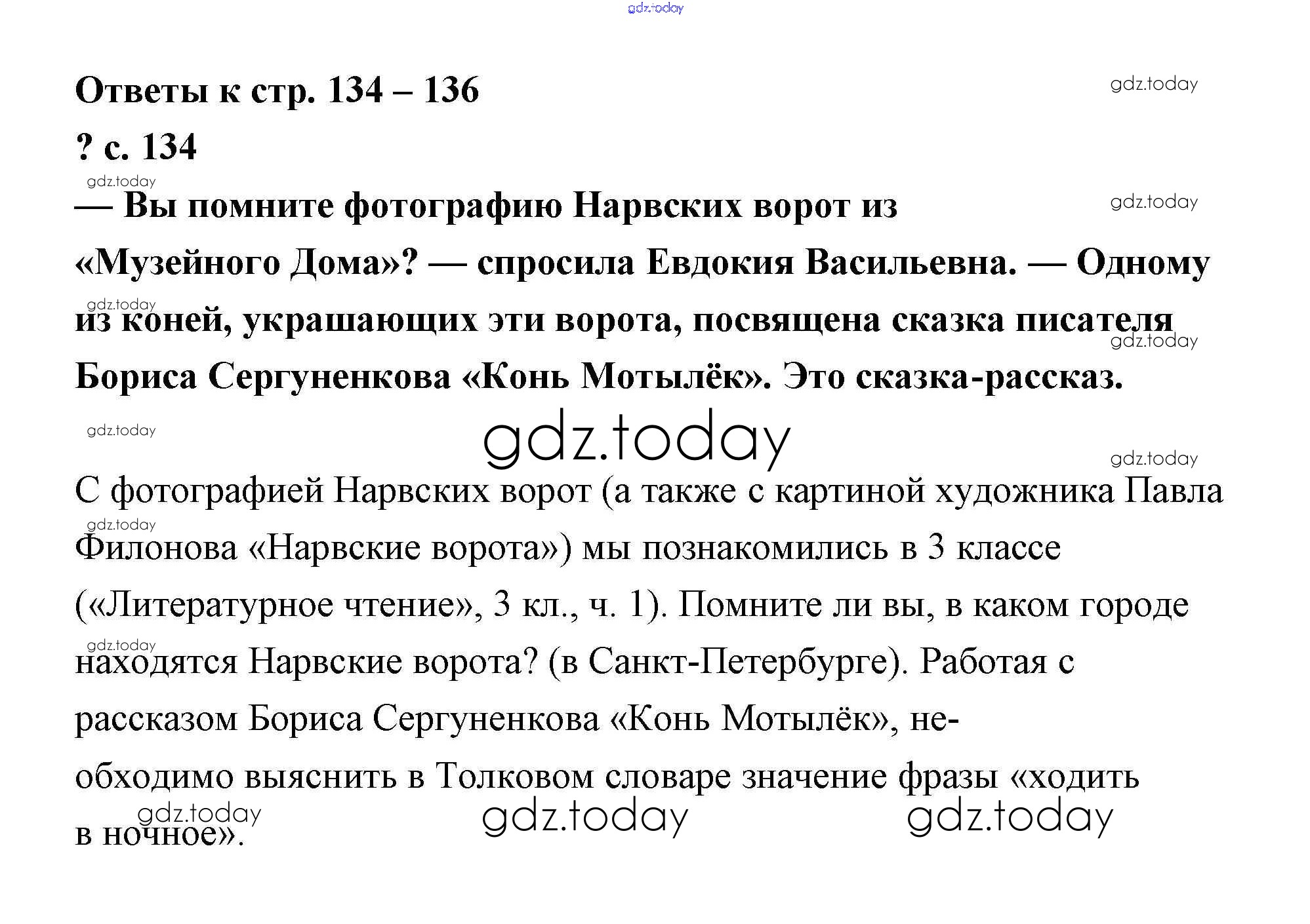 На страницах сайта gdz.today вы найдете учебный и вспомогательный материал, направленный на улучшения знаний школьной программы. ГДЗ - онлайн мир знаний Решение к части 1 (Страницы) 134 Учебнику по Литературному чтению для 4 класса Чуракова Академкнига Перспективная начальная школа 2017