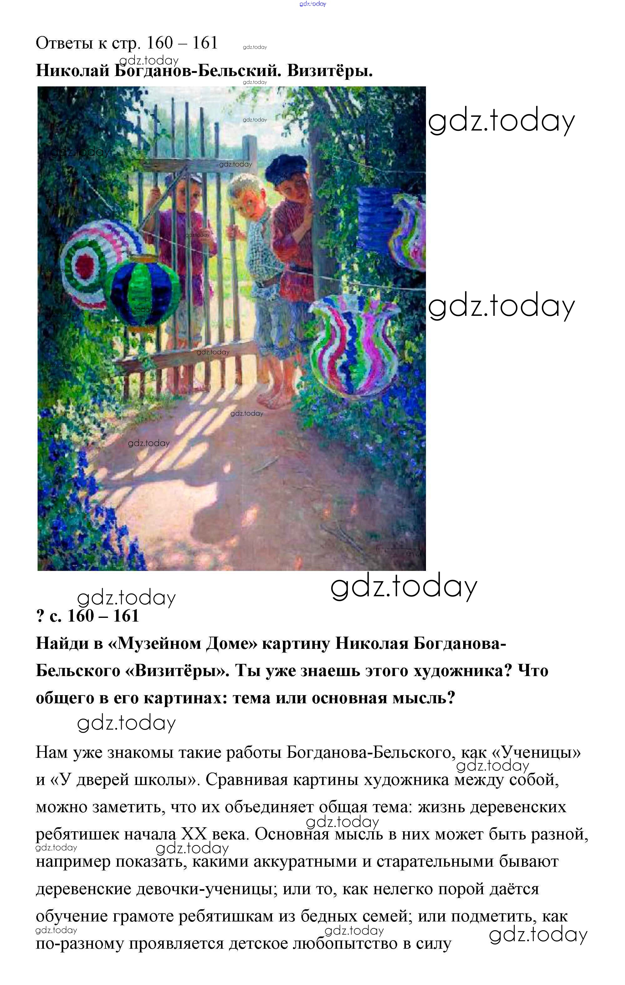 На страницах сайта gdz.today вы найдете учебный и вспомогательный материал, направленный на улучшения знаний школьной программы. ГДЗ - онлайн мир знаний Решение к части 1 (Страницы) 160-161 Учебнику по Литературному чтению для 4 класса Чуракова Академкнига Перспективная начальная школа 2017