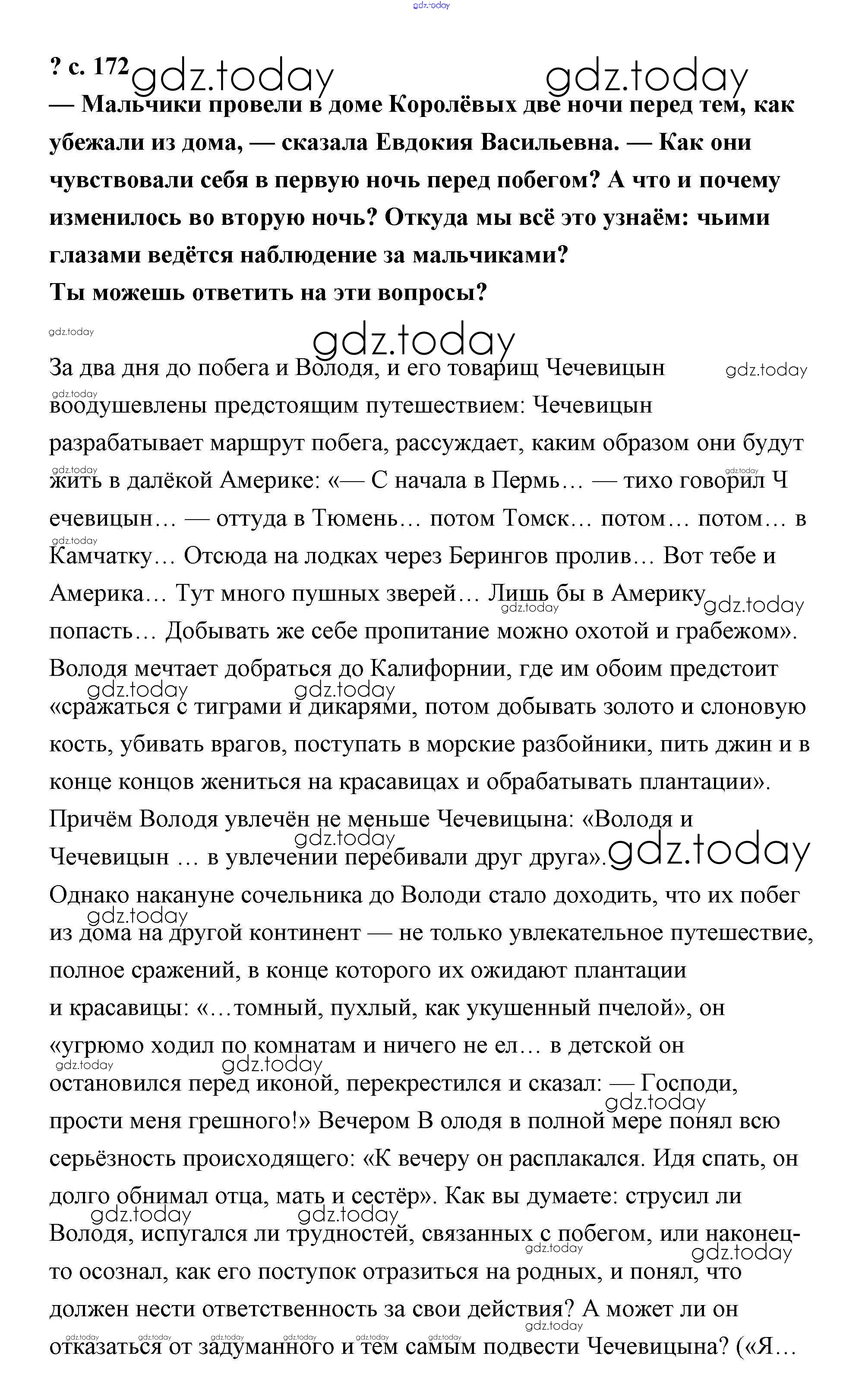 Ответы к Решение к части 1 (Страницы) 172 Учебнику по Литературному чтению для 4 класса Чуракова Академкнига Перспективная начальная школа 2017