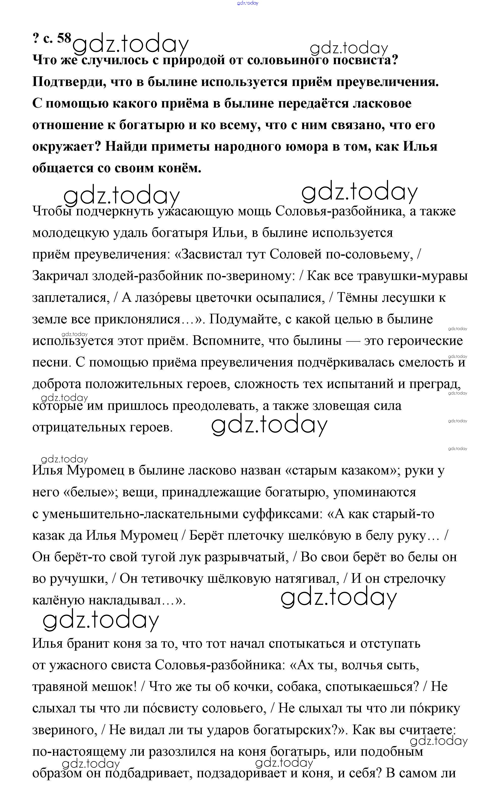 Ответы к Решение к части 1 (Страницы) 58 Учебнику по Литературному чтению для 4 класса Чуракова Академкнига Перспективная начальная школа 2017