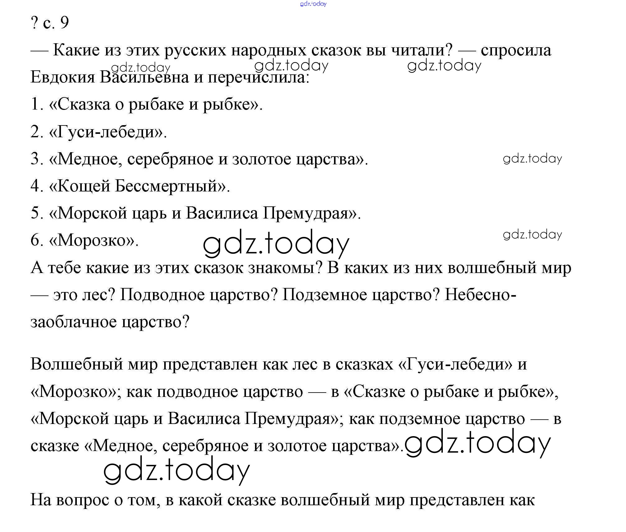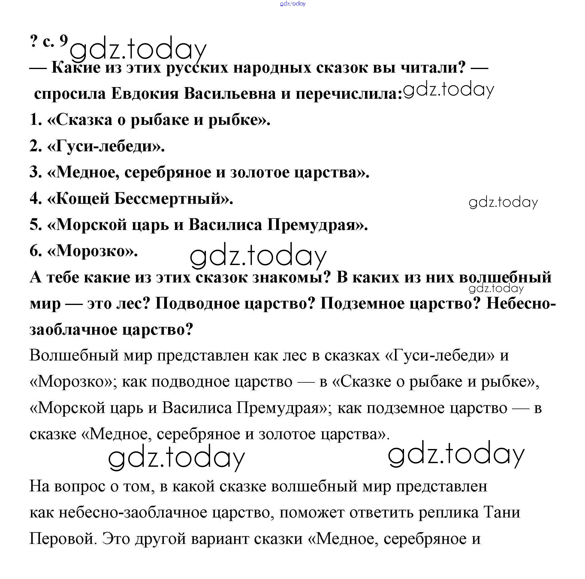 На страницах сайта gdz.today вы найдете учебный и вспомогательный материал, направленный на улучшения знаний школьной программы. ГДЗ - онлайн мир знаний Решение к части 1 (Страницы) 9 Учебнику по Литературному чтению для 4 класса Чуракова Академкнига Перспективная начальная школа 2017