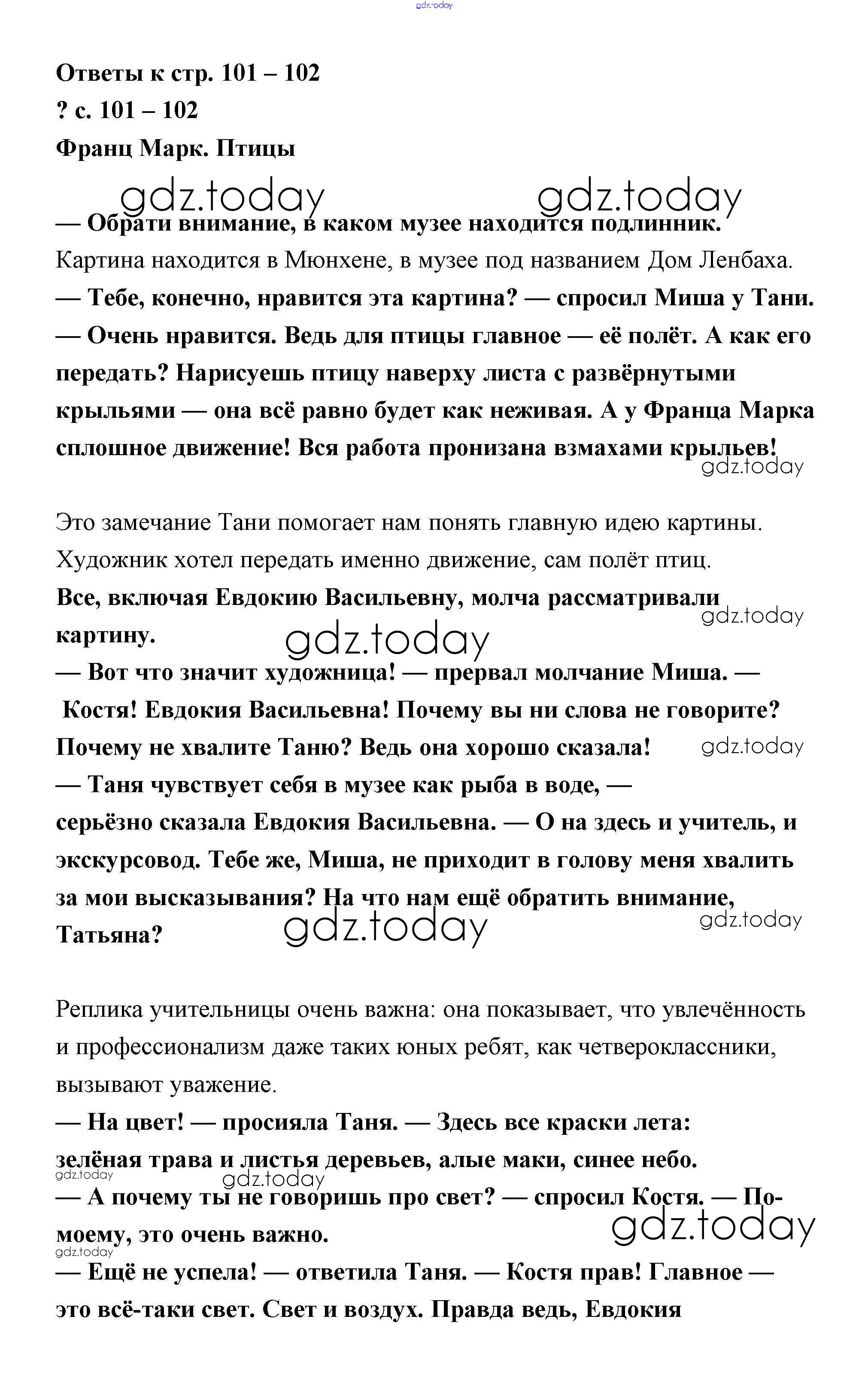 На страницах сайта gdz.today вы найдете учебный и вспомогательный материал, направленный на улучшения знаний школьной программы. ГДЗ - онлайн мир знаний Решение к части 2 (Страницы) 101 Учебнику по Литературному чтению для 4 класса Чуракова Академкнига Перспективная начальная школа 2017