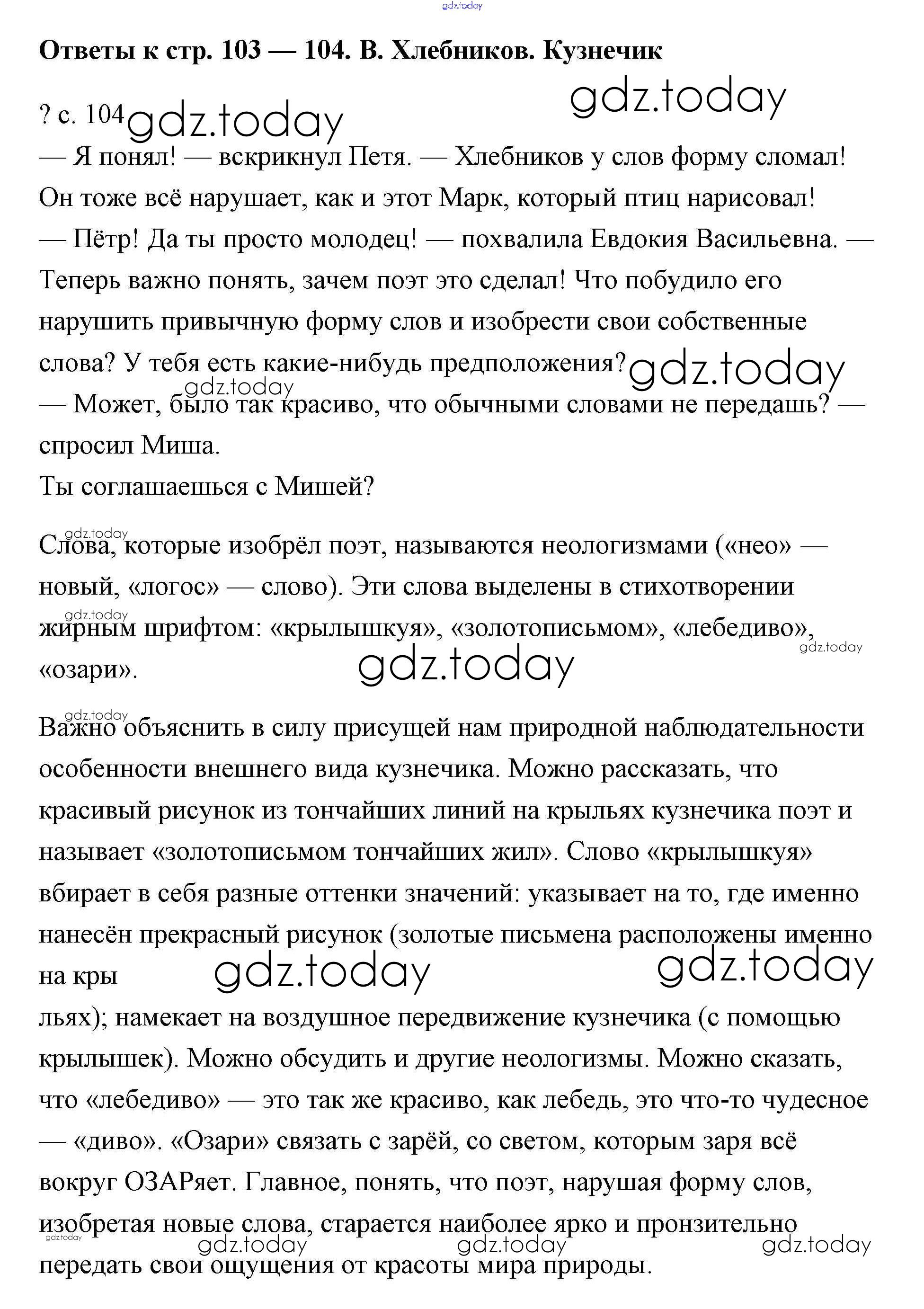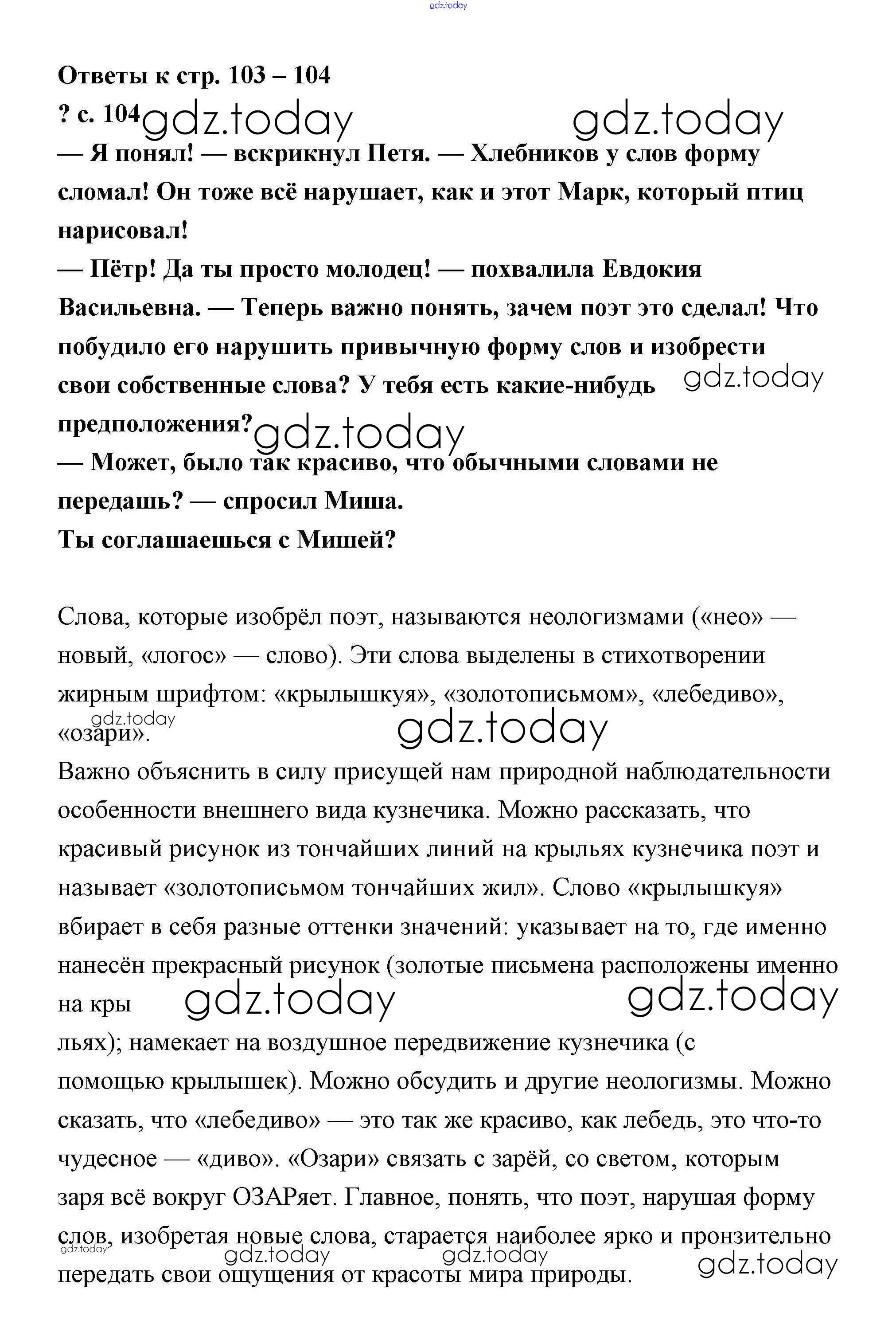 Ответы к Решение к части 2 (Страницы) 104 Учебнику по Литературному чтению для 4 класса Чуракова Академкнига Перспективная начальная школа 2017