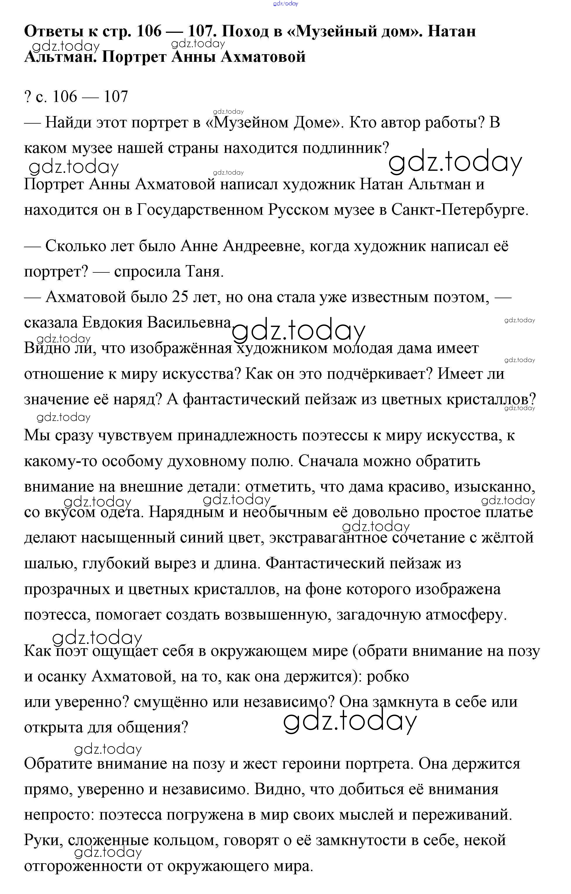 Ответы к Решение к части 2 (Страницы) 106 Учебнику по Литературному чтению для 4 класса Чуракова Академкнига Перспективная начальная школа 2017