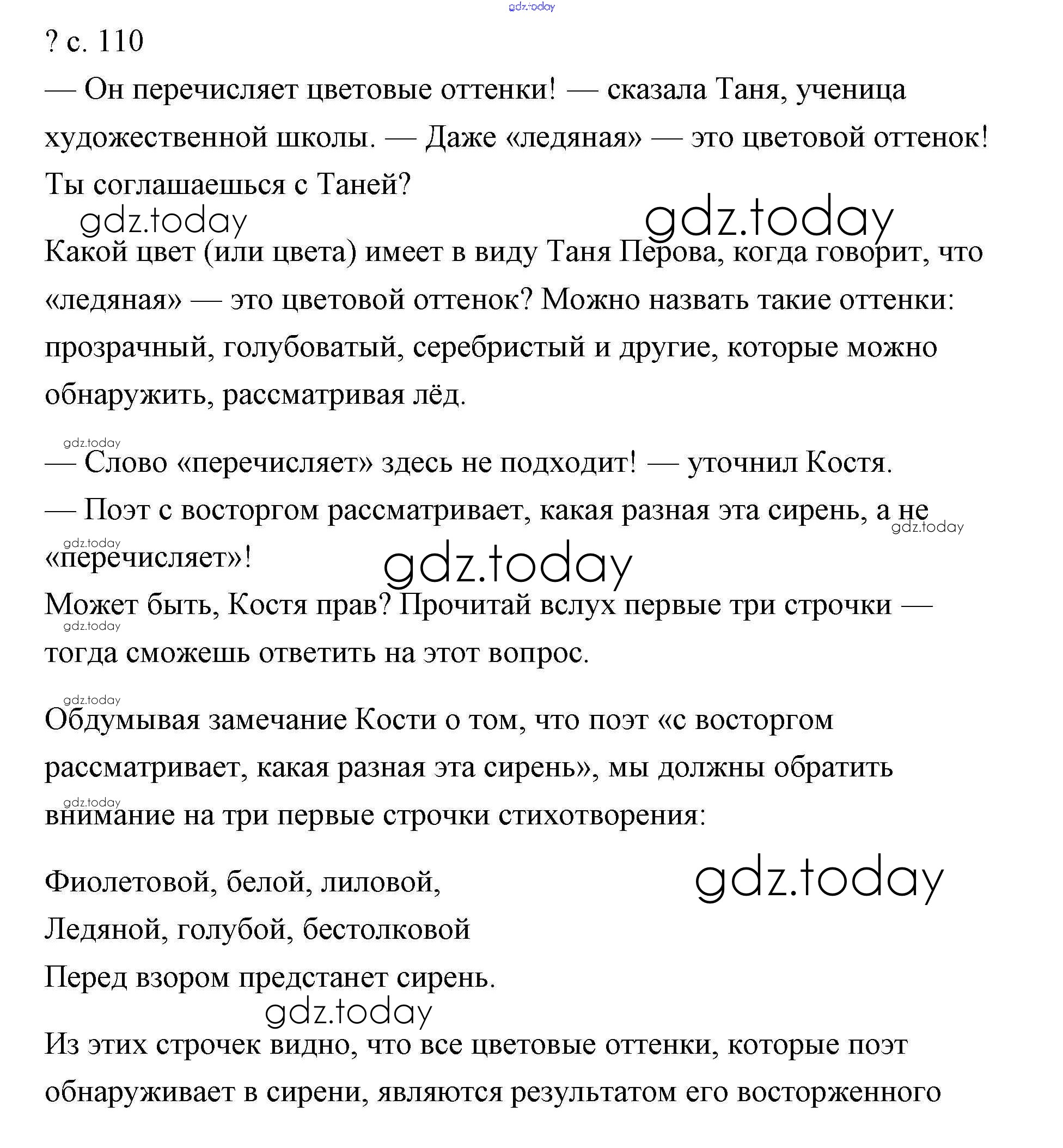 На страницах сайта gdz.today вы найдете учебный и вспомогательный материал, направленный на улучшения знаний школьной программы. ГДЗ - онлайн мир знаний Решение к части 2 (Страницы) 110 Учебнику по Литературному чтению для 4 класса Чуракова Академкнига Перспективная начальная школа 2017