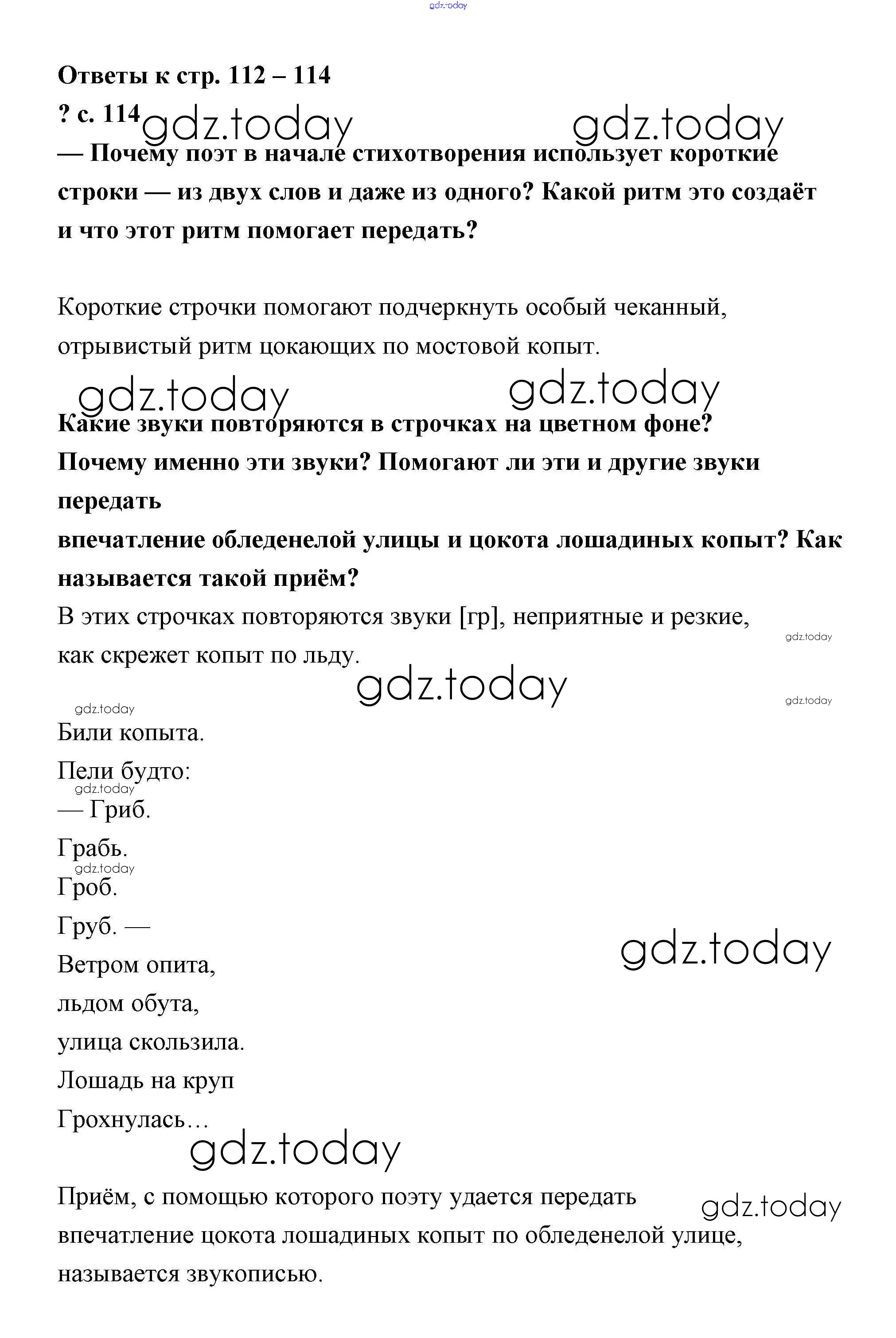 На страницах сайта gdz.today вы найдете учебный и вспомогательный материал, направленный на улучшения знаний школьной программы. ГДЗ - онлайн мир знаний Решение к части 2 (Страницы) 114 Учебнику по Литературному чтению для 4 класса Чуракова Академкнига Перспективная начальная школа 2017