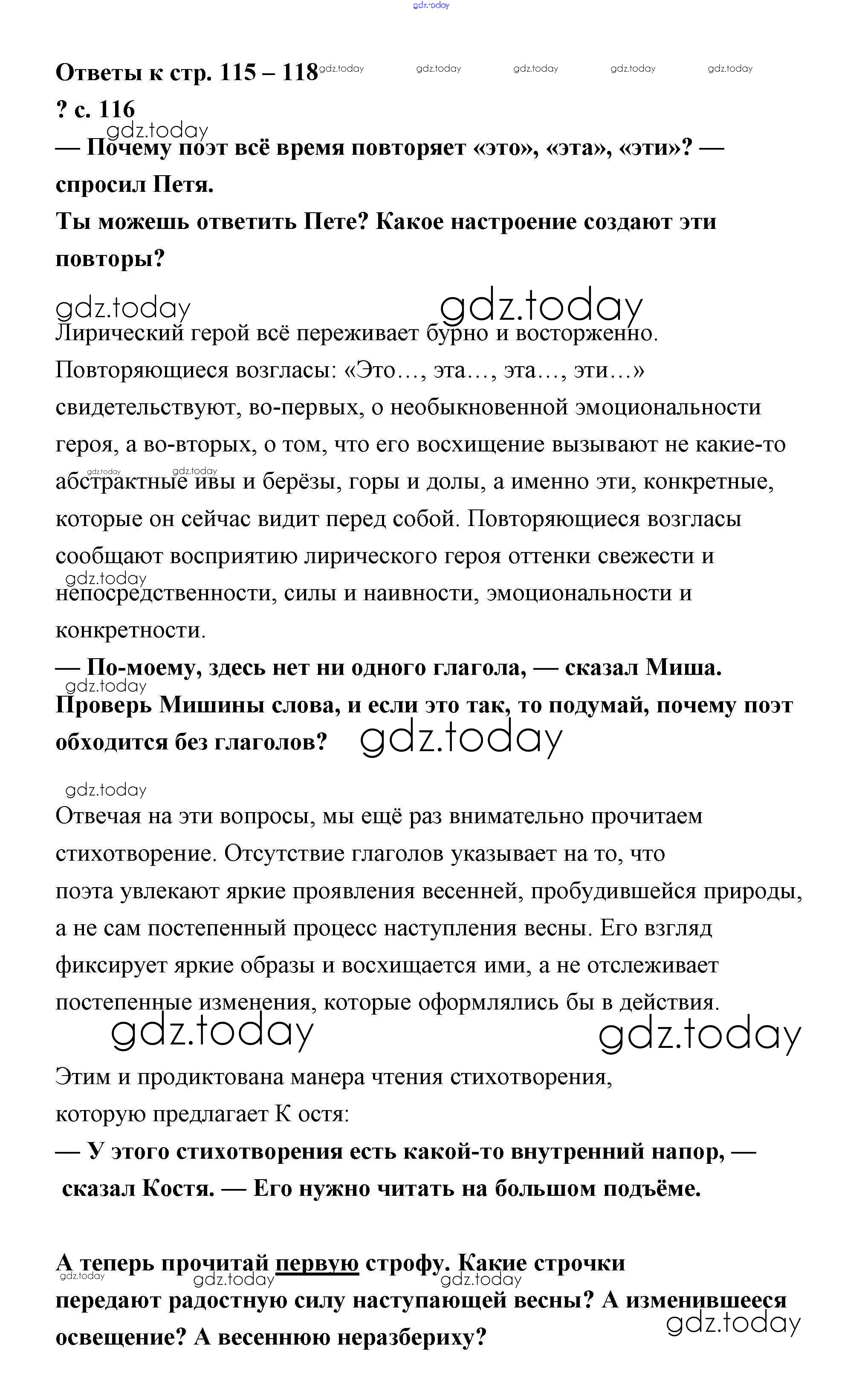Ответы к Решение к части 2 (Страницы) 116 Учебнику по Литературному чтению для 4 класса Чуракова Академкнига Перспективная начальная школа 2017